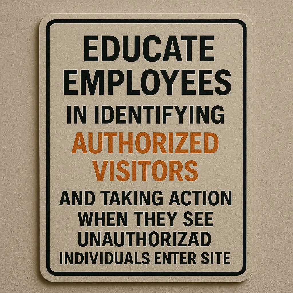 Educate employees in identifying authorized visitors and taking action when they see unauthorized individuals enter the site.